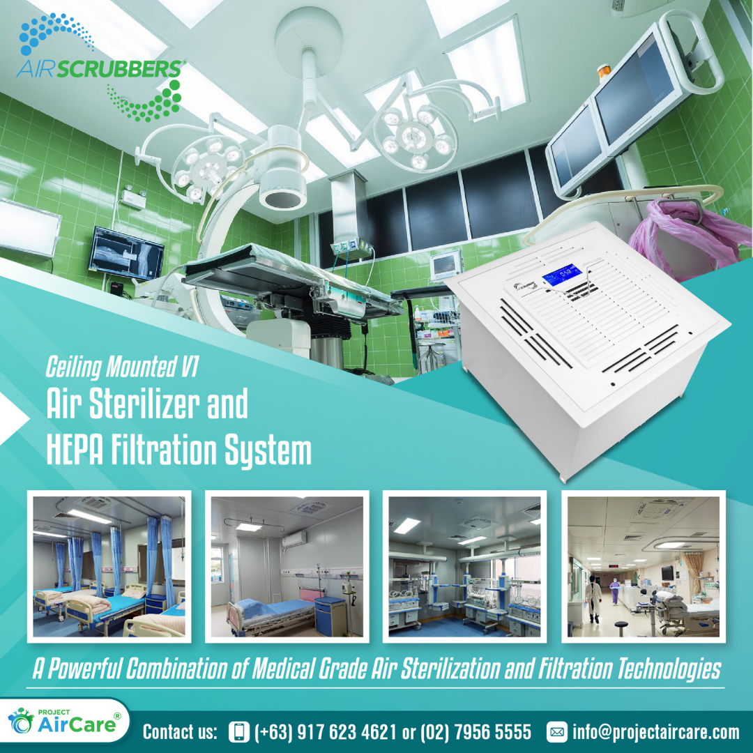 Air Scrubbers’ Air Sterilizers and Ceiling Mounted Air Purification and HEPA Filtration System can be strategically installed above work stations, where it matters most. No more unsightly and obstructive on-ground equipment. This Powerful 7 Stage Commercial Air Purification and Filtration System effectively eliminates various pathogens such as Viruses and Bacteria.